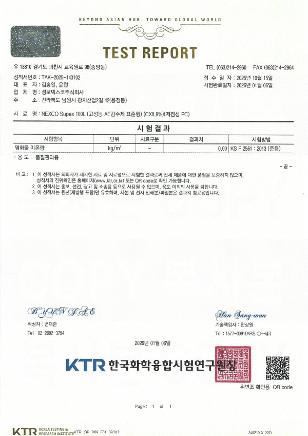 염화물 이온량 - 2026(NEXCO Supex 100L)